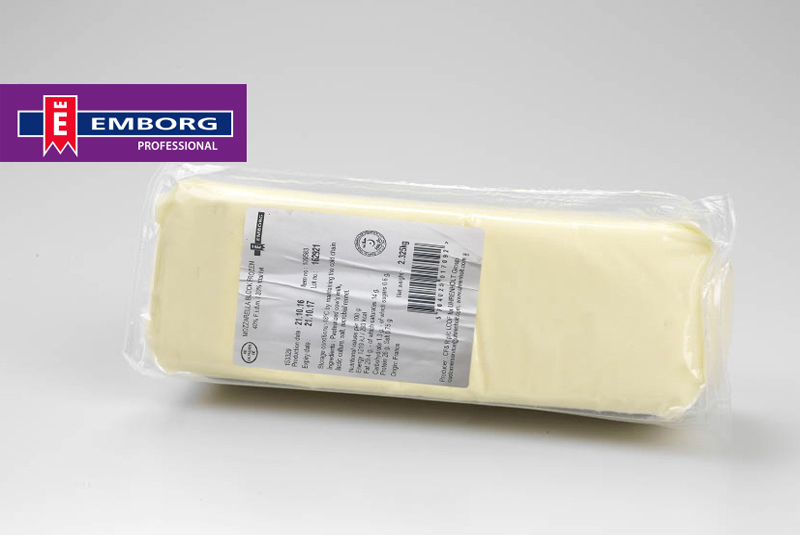Phô mai mozza Emborg 9.2kg nhập khẩu từ Pháp có màu vàng nhạt, khá mềm, dễ tan chảy nên là loại phomai ngon nhất để chế biến pizza. Khi chin, phomai rất thơm, dẻo mịn, bùi và dính. Sản phẩm đóng khối 9.2kg loại lớn , khi dùng có thể cắt lát ra nếu cần. Được sử dụng rộng rãi trong các chế bieeens món ăn như món nướng, làm bánh, nấu sup...